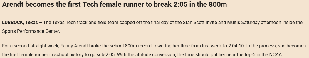 Et finalement au meeting CMCM du 18 janvier Fanny fait exploser la Coque en remportant le 800m avec un temps de 2 :00.83, ce qui n’est pas seulement un nouveau record national (avant 2 :01.82 : Charline Mathoias 18.2.2024) mais la qualifie aussi pour les Championnats du monde en salle.